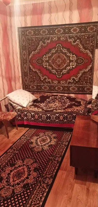 Якщо ваші смаки специфічні і вам до вподоби радянські, даруйте, персидські килими, то це житло точно вам підійде. Хочете килим на підлогу — тут є такий. Килим на стіну? Теж не проблема. Килими є навіть на дивані, в коридорі і на кухні. Щоправда ділити це килимове королівство доведеться з власницею, бо здається лише кімната. Всю цю красу можна орендувати в Дніпрі.