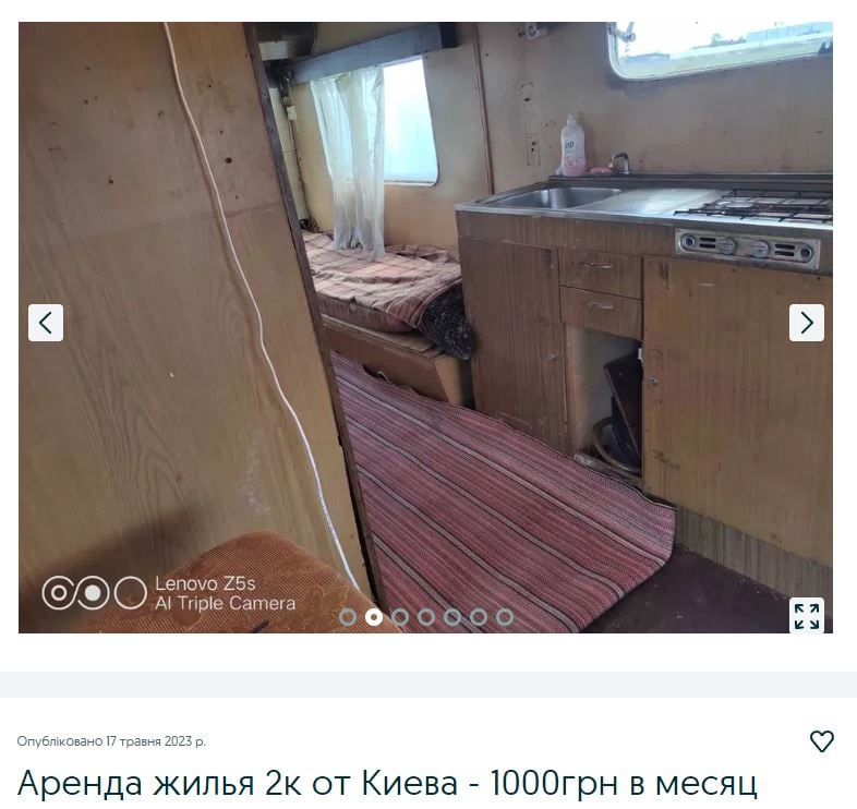 Знову столиця. Ну майже. Всього 2 км від Києва. Але назвати це квартирою просто неможливо. Це вагончик. Так, хтось здає в оренду трейлер, який, таке враження, побував десь у зоні бойових дій. Зате є власна котельня. Так власник вагончику назвав усім відому "буржуйку", яка ідеально доповнює образ цього напрочуд оригінального житла.