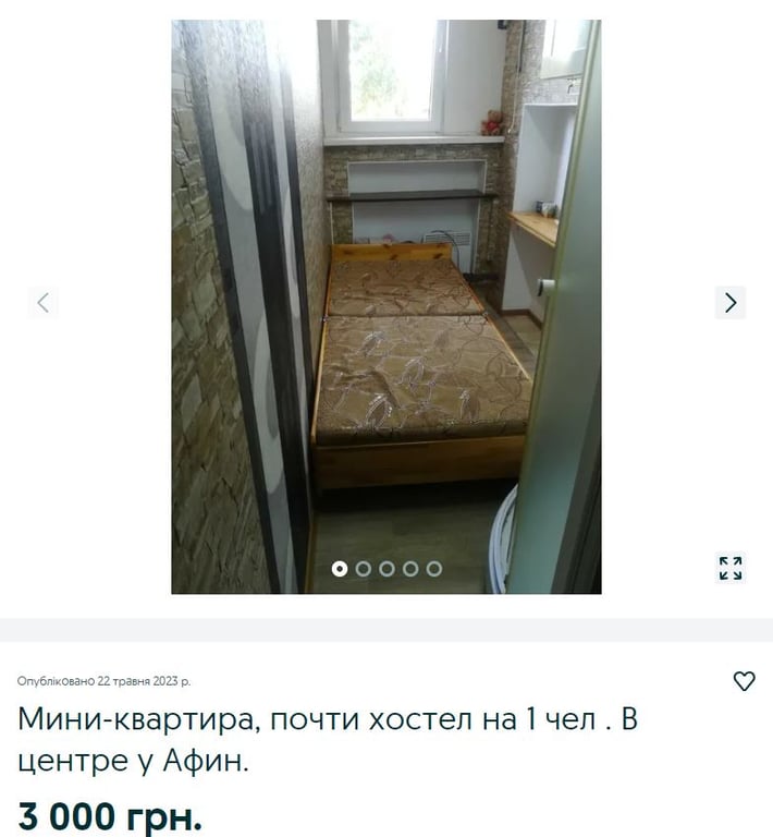 "Квартира в 6 кв. м для тих, хто приходить додому поспати і кому важлива близькість до центру", — пише автор оголошення.