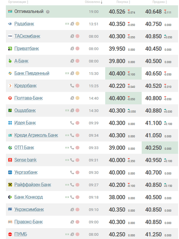 Государственный Ощадбанк предлагает доллар в покупке за 40,30 гривны, в продаже — за 40,88, что на пять и три копейки больше по сравнению с предыдущим днем соответственно.