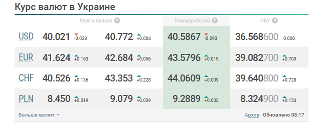 Средний курс американской валюты в украинских банках в покупке составляет 40,02 гривны, а в продаже — 40,77.