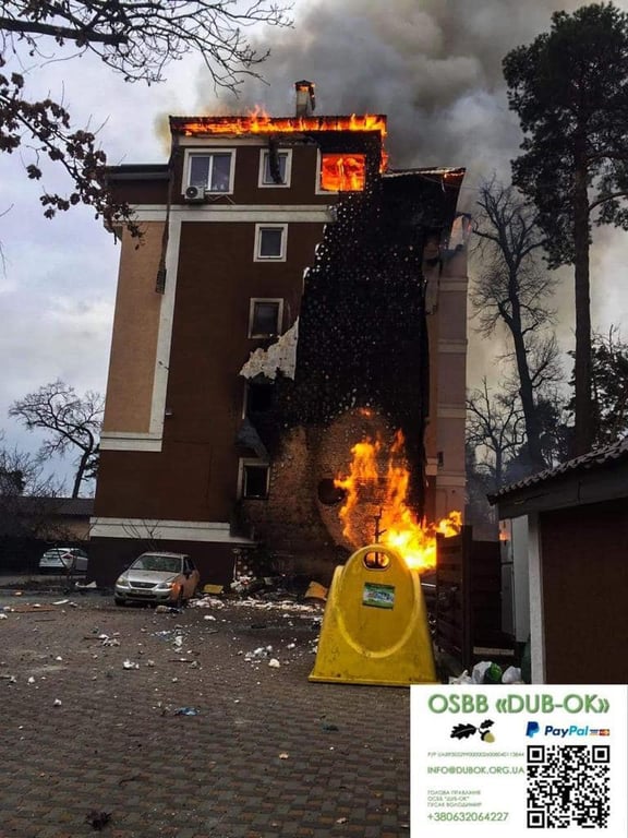 Многоэтажка, о которой идет речь, — одна из сотен тысяч жертв российской вооруженной агрессии в Украине. В нее в марте 2022 года попал снаряд, почти полностью уничтожен последний этаж и поврежден газопровод. Пожар длился четыре дня.