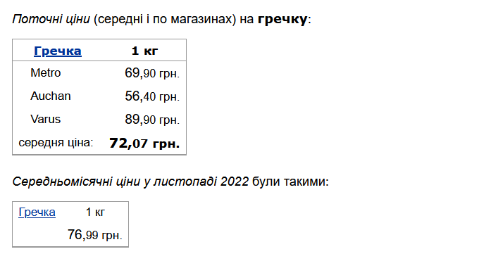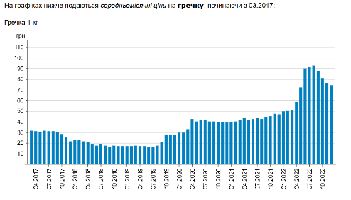 Так, згідно з моніторингом, станом на 29 грудня кілограм цієї крупи в середньому коштує 72,07 грн, що на 4,92 грн менше середньомісячної ціни місяцем раніше. У листопаді гречку продавали за 76,99 грн, а в жовтні — за 80,78 грн.